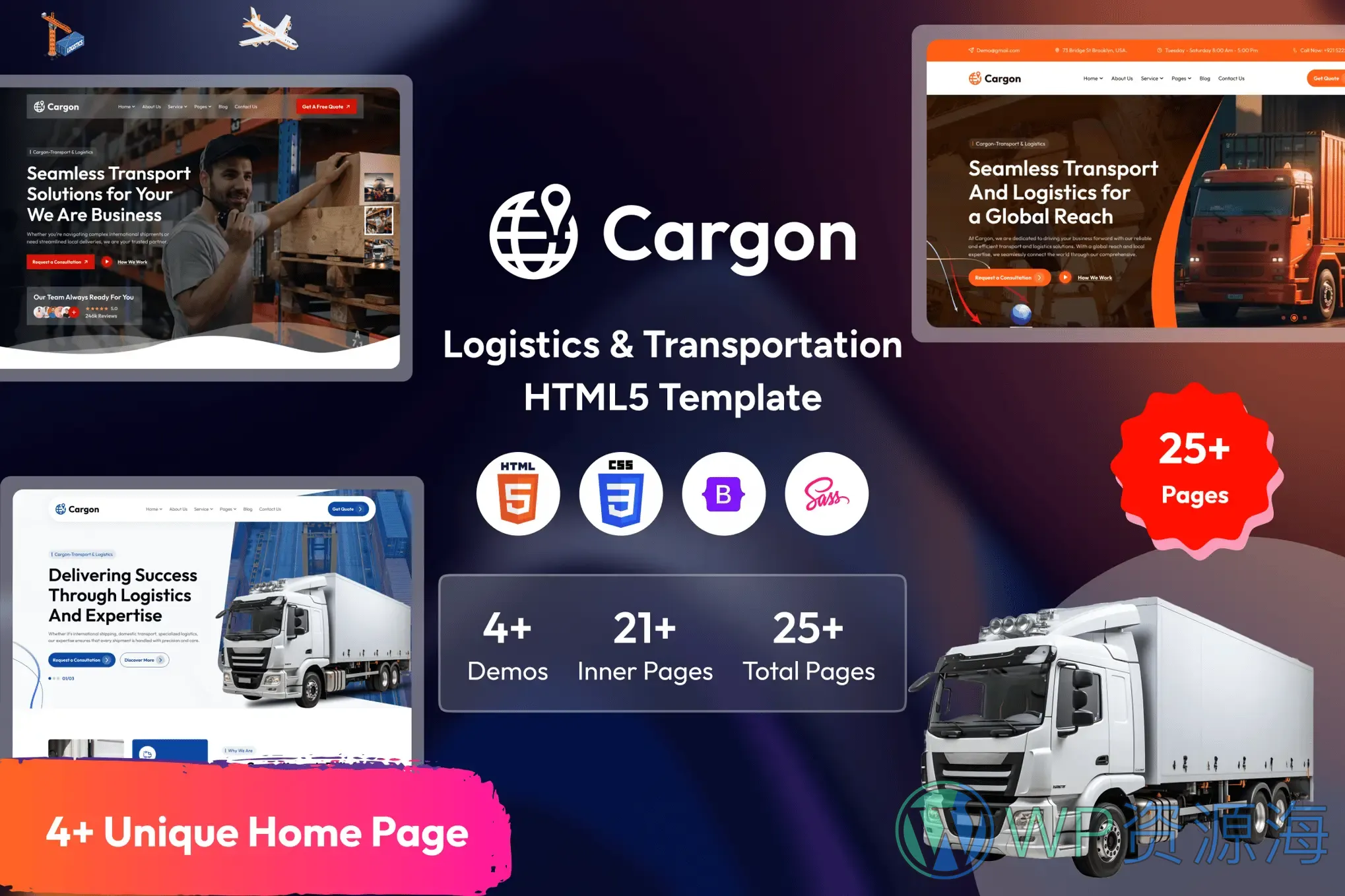 在现代商业环境中,物流与运输行业的网络形象至关重要,能为公司带来更多潜在客户。而 Cargon 模板 正是一个能快速提升品牌形象和专业性的利器。Cargon 是一款现代、时尚的 HTML5 模板,专为物流、卡车运输、仓储、货运、海运及空运服务等企业设计。只需几分钟,便可创建一个符合行业需求的高质量网站,为您的业务节省大量时间和成本。Cargon 提供了所有展示物流服务的必要功能,且超级响应迅速,非常易于自定义。