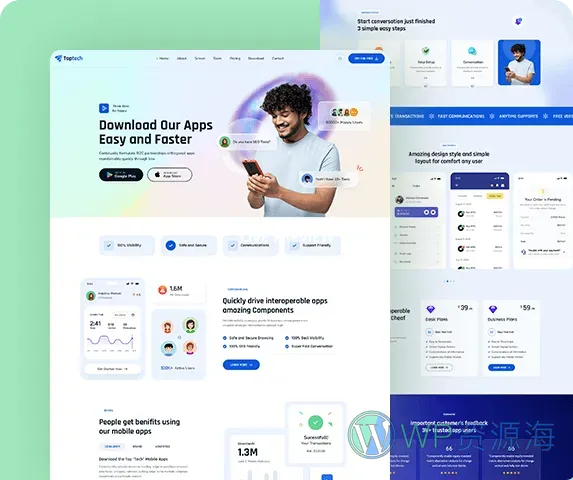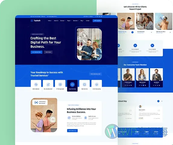 TopTech 集合了现代化设计、灵活的自定义功能与完整的企业展示工具,既适合初创公司快速上线,也适合大型科技企业打造品牌官网。凭借 20+ 演示站点和强大的插件支持,你完全可以根据业务需求打造一个独一无二的高端网站。
