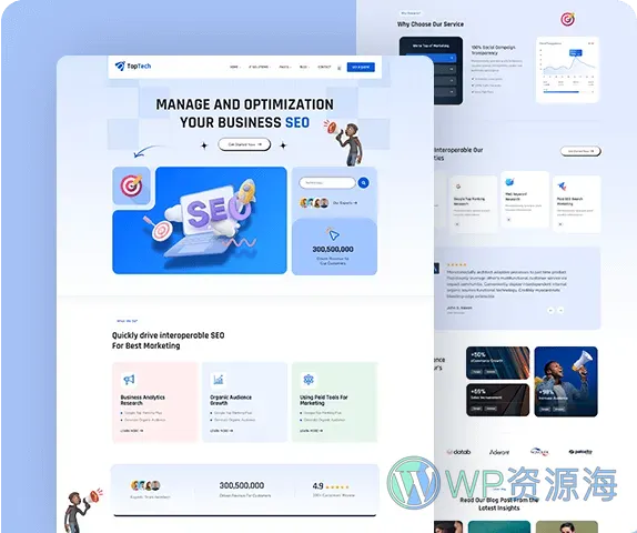 在数字化时代,想要快速建立一个专业、现代且高转化的企业官网?TopTech 将是你的理想选择!这款主题专为 IT 解决方案、科技公司、SEO 营销机构及各类数字化业务打造,集成了灵活的设计与强大功能,让你无需任何编程基础,也能轻松搭建高端网站。